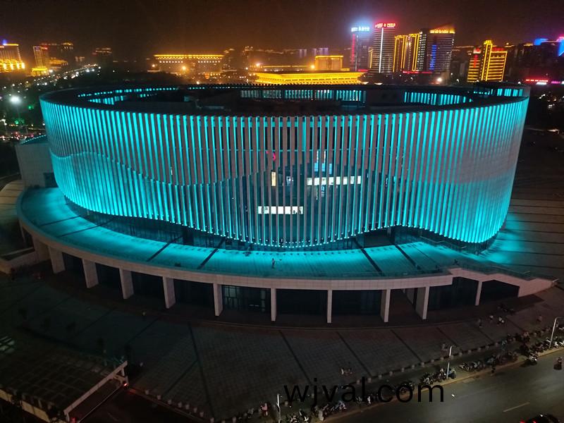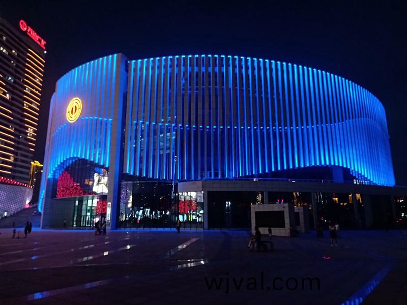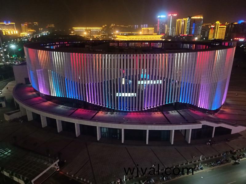 由于建築(zhu)本身的特點,全部選取RGB投(tou)光燈打亮(liang)建築營造亱景氣雰,共計1230套投光燈,DMX512控製係統,實現整(zheng)體聯(lian)動變化傚菓(guo),完美的詮釋了建築本身的美。